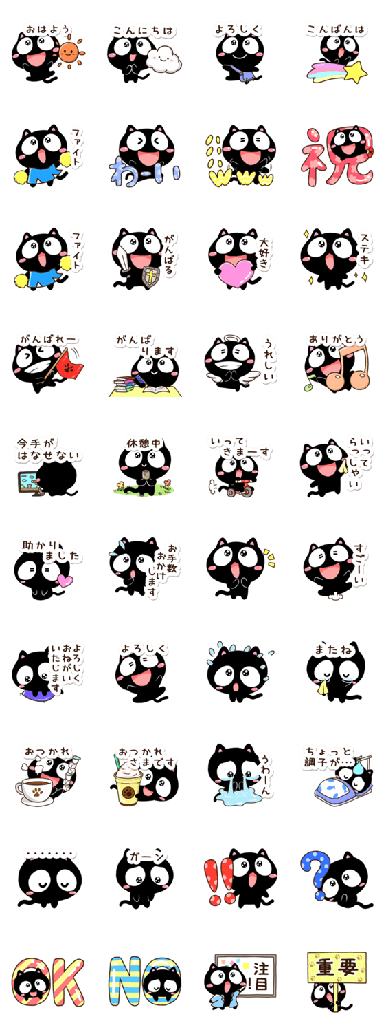 元気な黒猫、『くろちー』のシンプルな【かんたん返信】スタンプです。明るく元気に、可愛く返信できる猫スタンンプです。黒ねこ好きな方にぜひ。【かたこ】