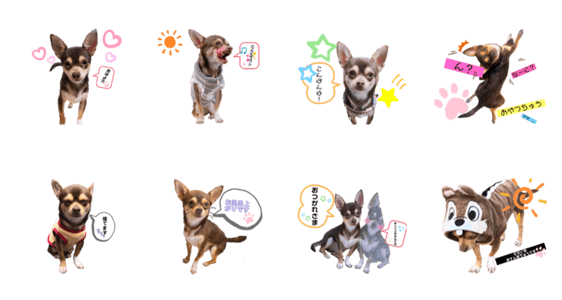 普段の日常生活を撮り作りました。毎日癒されてますので念願の『初』スタンプです。更に近くに居ると言う存在で愛犬写真をスタンプにさせて頂きました。