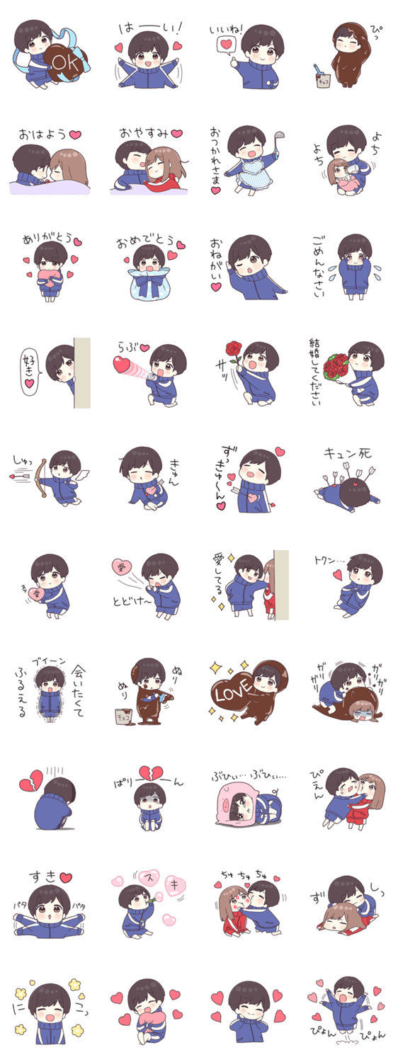 ジャージくんシリーズ第14弾!大切な人へ、チョコと一緒に特別な気持ちが贈れるスタンプです♡日常でも可愛く使えます♪