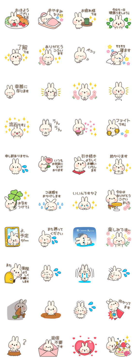 お礼や相槌、リアクション等…日常の会話や会社でも使えるうさぎの可愛いスタンプです!