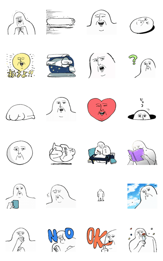 動き、のびのびと生を謳歌している白ハゲスタンプです