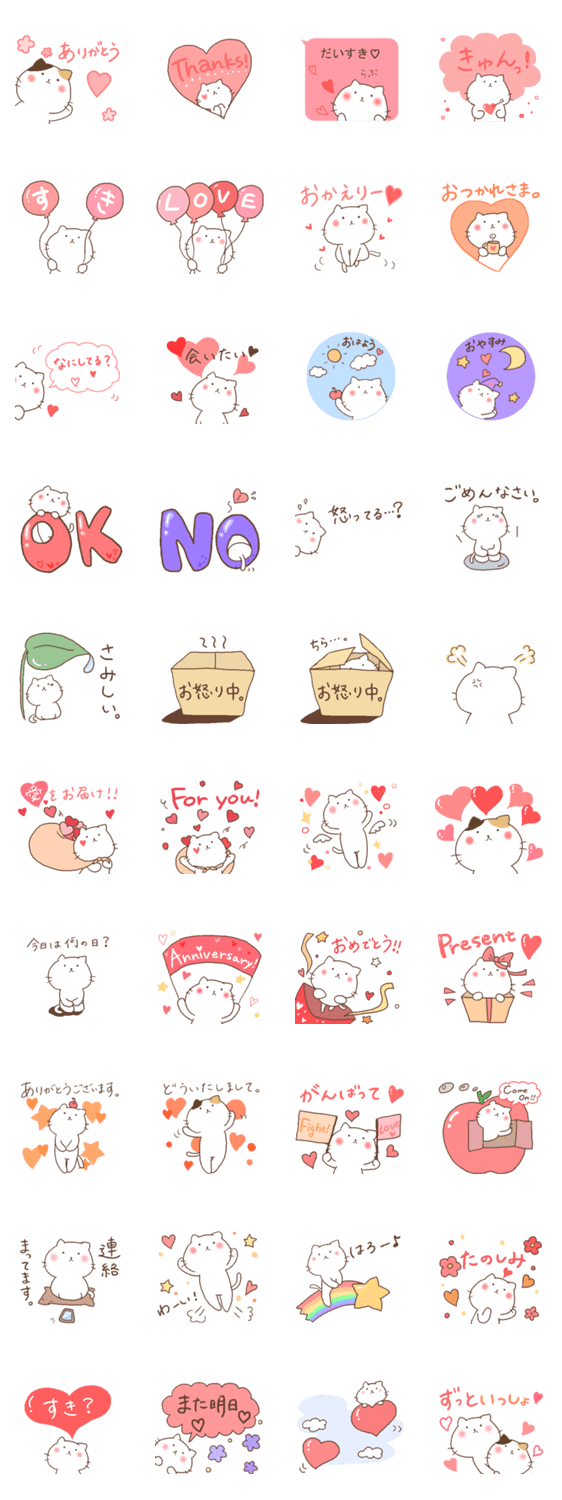 「にゃんこと僕。」の人気猫キャラ「にゃんこ」のLOVEスタンプ。彼氏・彼女・恋人や大切な人に使ってほしい、愛の溢れる日常スタンプです。