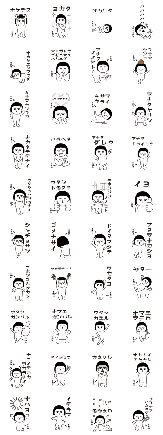 マアヤの面白スタンプ(カタコト編)ヨカタラキサマツカテクタサイ ※このスタンプはトークルームで大きく表示されるBIGスタンプです。
