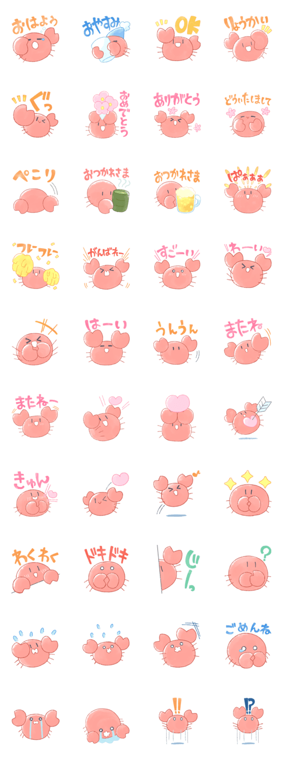 ゆるっとふわふわなカニさんのスタンプです。かわいい蟹さんです。