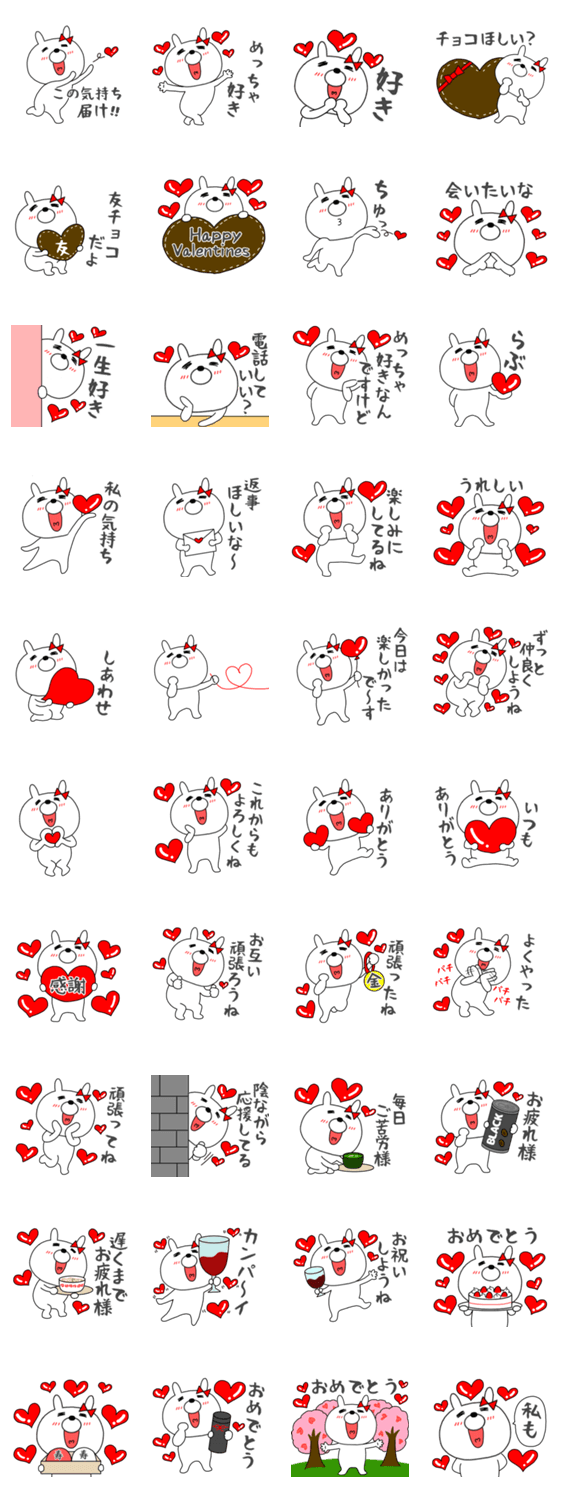 バレンタインお祝いメッセージにも使えるハートいっぱいで可愛い ウサギのスタンプです。
