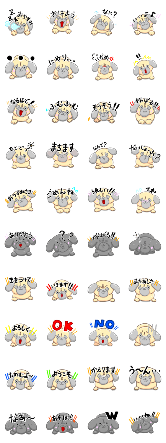 パグの無難なセリフを集めました。かわいく描けたと思います。