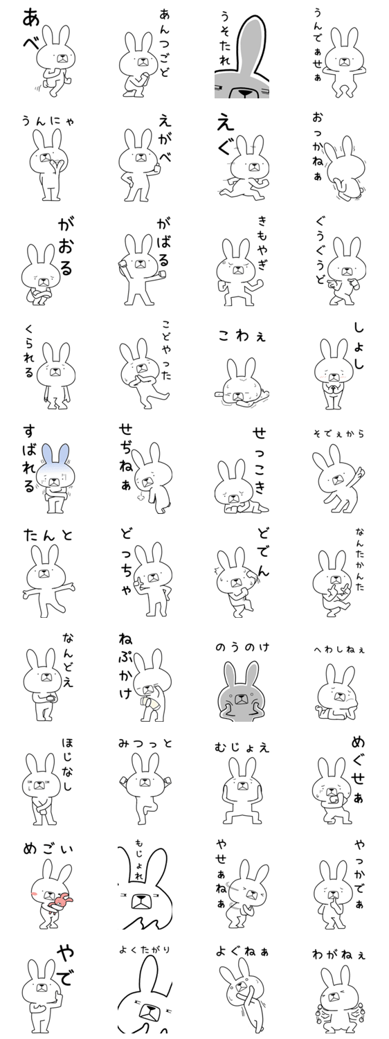 いろんな方言をつかううさぎのスタンプBIG二戸弁編(岩手。違う県verに似た方言が見つかるかも) ※このスタンプはトークルームで大きく表示されるBIGスタンプです。
