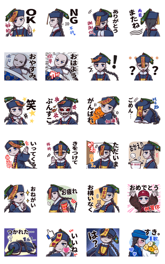 キョンシーのしーぼーくんこと将師博(しょう しはく)。 今日もふらりと現れてはあなたを応援してくれます。 挨拶からリアクションまでこなしてくれるスタンプです。