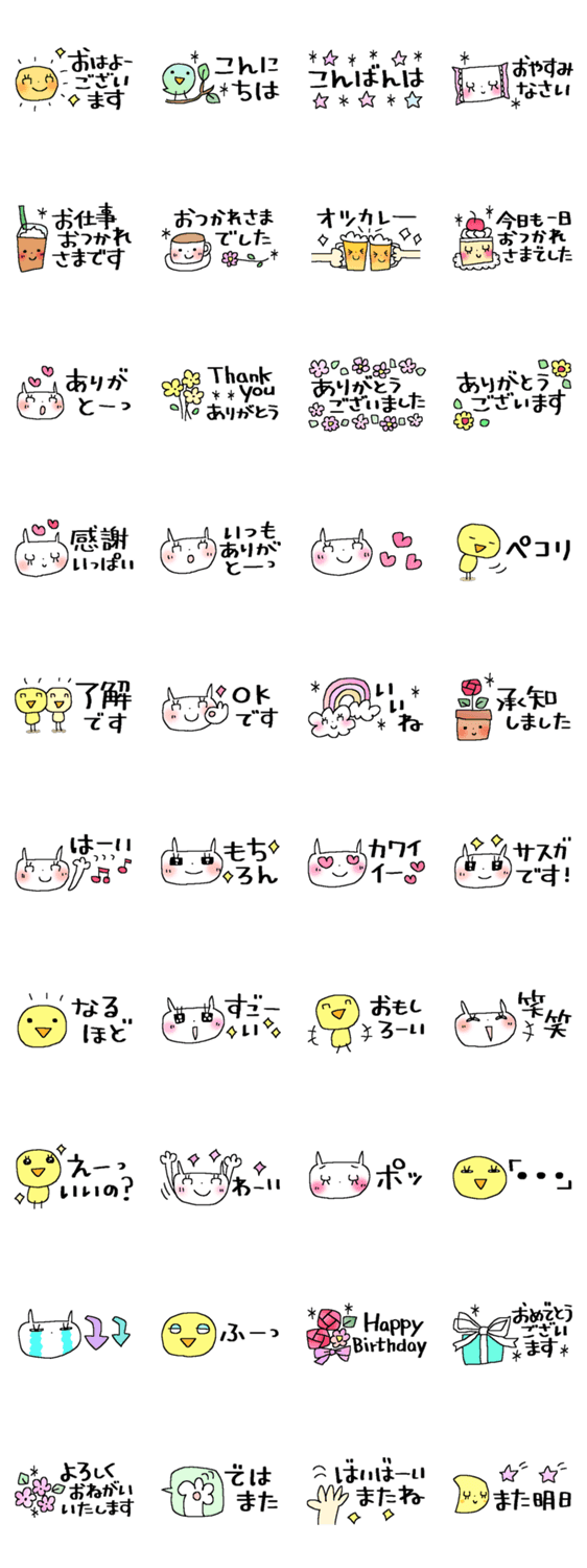 縦サイズが少し小さめ、省スペースだけど見やすい文字の40個。気持ちが伝わる大人かわいい使いやすいスタンプです。
