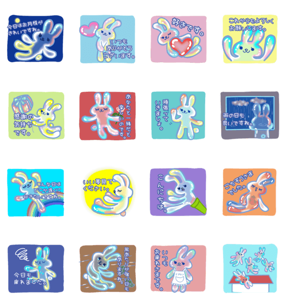 普段伝えられない感謝の気持ちや思いを敬語で伝えるスタンプです。 しゃぼん玉のように繊細で色鮮やかなうざぎさんです。