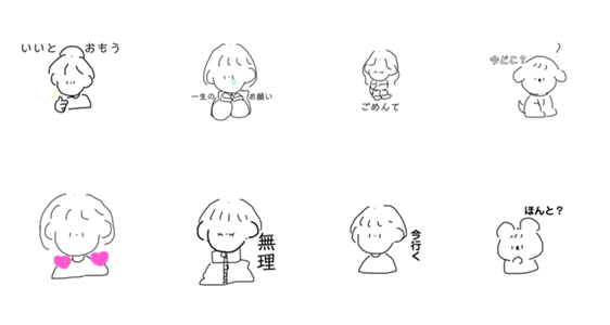 少し雑なスタンプ。 真顔か目瞑ってる顔しかないよ