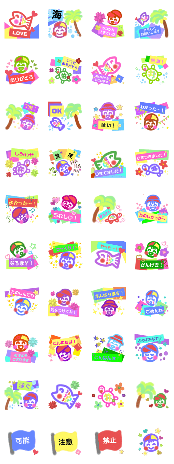 大きい文字・分かりやすい・見やすい・カラフル・ライフセーバー・魚・亀のスタンプです☆ ※LINE Creators Studioでつくったスタンプです。