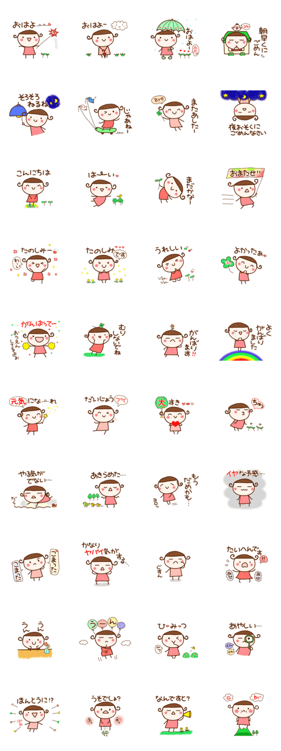☆すもも第2弾☆かわいいおかっぱの女の子の普段、日常でよく使う言葉のほのほのしたスタンプ。小さいサイズだから控えめに使いたい方にぴったりです。ゆるい手描き。