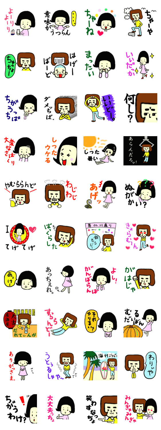 | スタンプ説明 | 奄美大島で使われている楽しい方言がたっくさん。いろんな場面で使ってみてね。 |