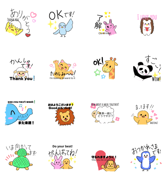 日本語&英語の、かわいい動物スタンプです!日常での会話に是非!!