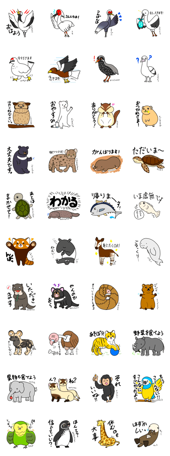 色んな絶滅危惧種の生き物が色んな気持ちを伝えてくれるスタンプです。