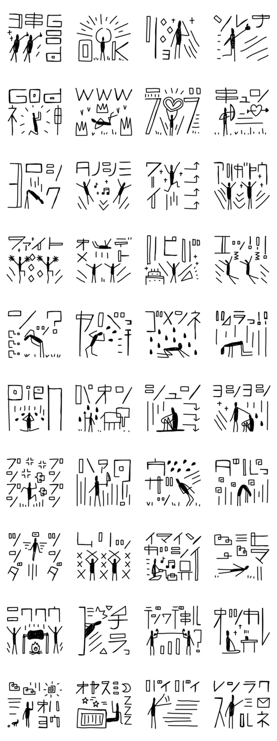 エジプトなどにありそうな壁画風スタンプ。 象形文字風のメッセージもちゃんと読めるよ。 ぴえん/ぱおん/線画/モノクロ/下手/ヘタ/毎日使える/壁画