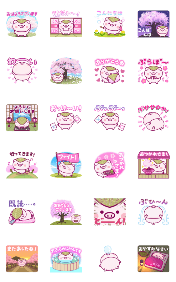 桜餅のような甘えん坊な子豚ちゃんのアニメーションスタンプです。 いつもぶひぶひしてます。よろしくね。
