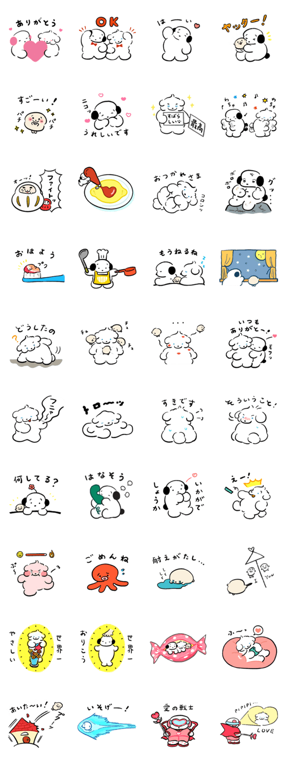 おだやかで健康な犬、ココモとスモアの気持ちを伝えるスタンプです。ハートフルな気持ちを優しい笑顔で届けます。