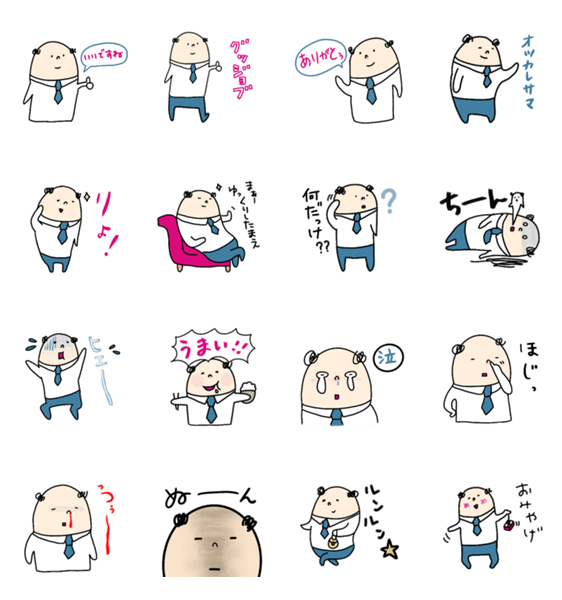 どこか憎めない、まるーいおじさんのゆるいスタンプ。