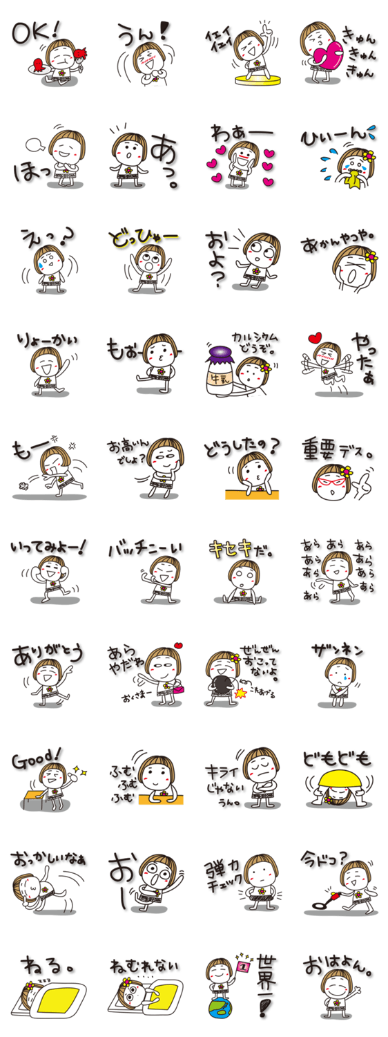 前髪ぱっつん(前髪パッツン)のはな子ちゃん。シマ子ちゃんとお友達です。