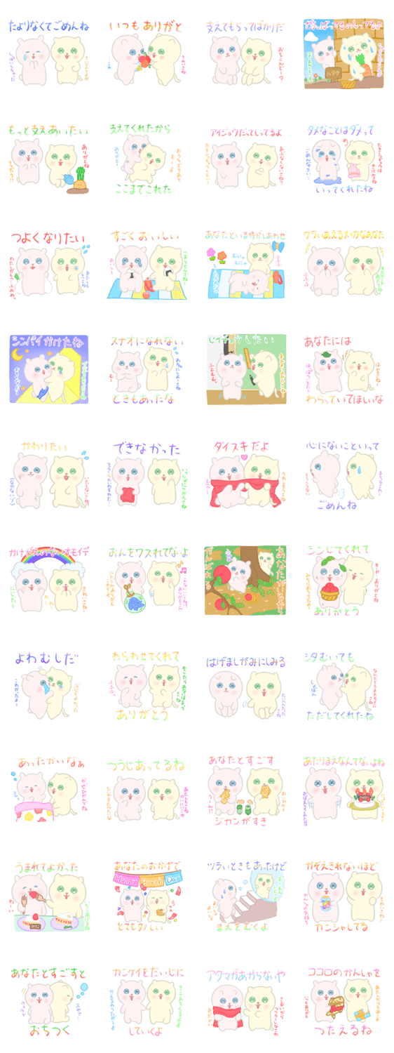 白ネコのあいうえお・・・ってるスタンプ