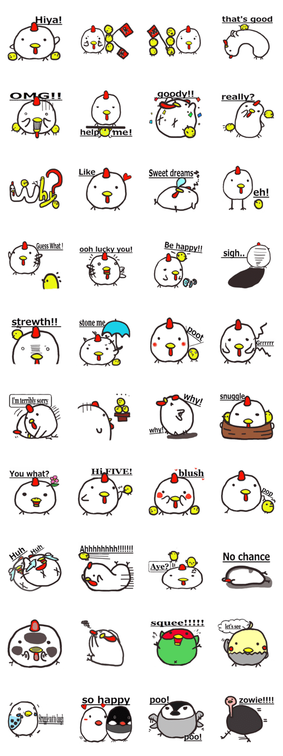 ニワトリのニケとひよこのピーコの楽しい生活をスタンプにしました。