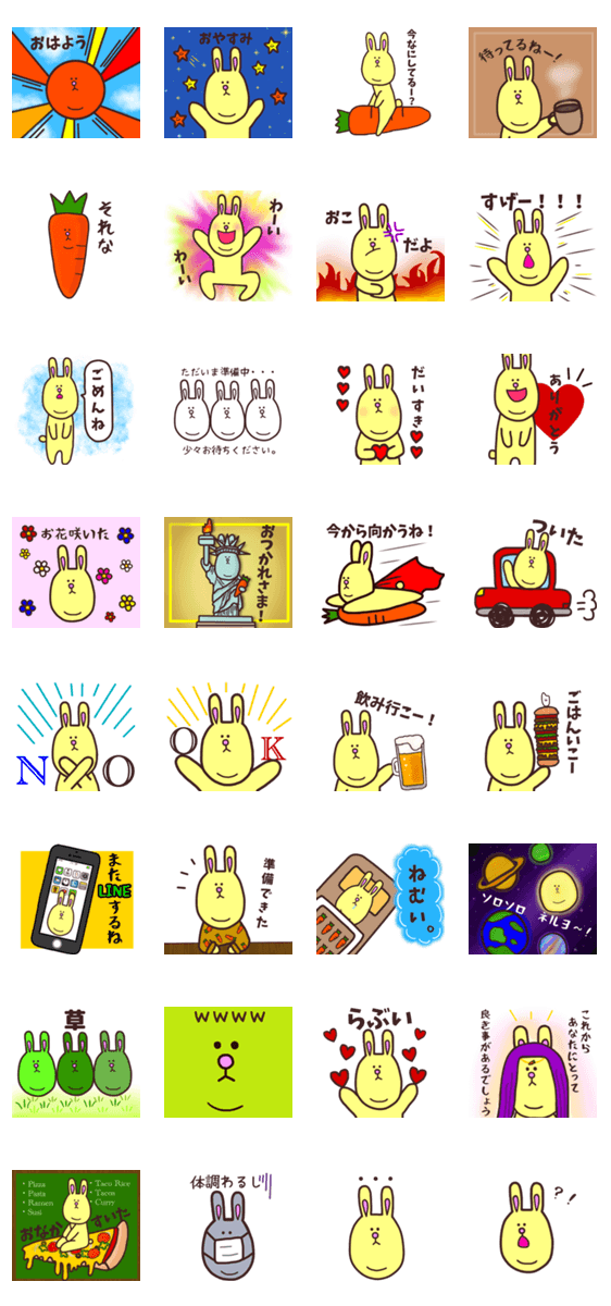 二重あごうさぎのスタンプです。是非、日常会話に二重あごを添えてあげてください!!!