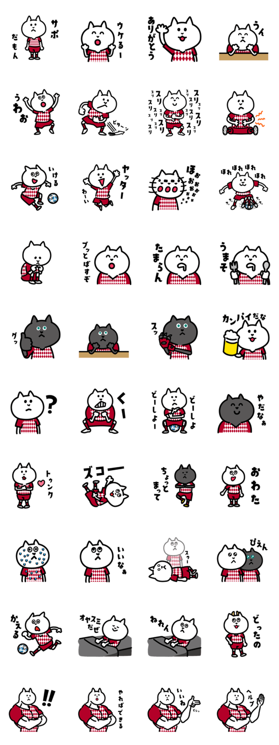 サッカーが好きなネコのスタンプ。 クリムゾンレッドのチームを応援するネコ(ヒト)に。