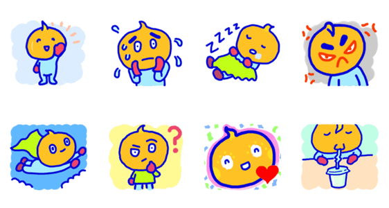 Orange Licky is a baby orange with a cow lick. When not napping, Orange Licky likes to lie in an outdoor field somewhere and watch the clouds pass by.
