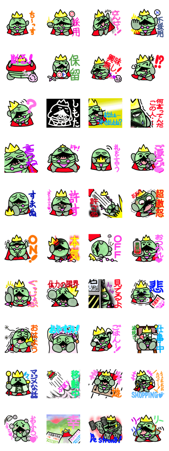 服の概念がない豆王国にも関わらず、女性物の極小ビキニを着る事が趣味だとカミングアウトした豆王様。自由と自分を愛する事の大切さを謳うスタンプ…かも知れません。