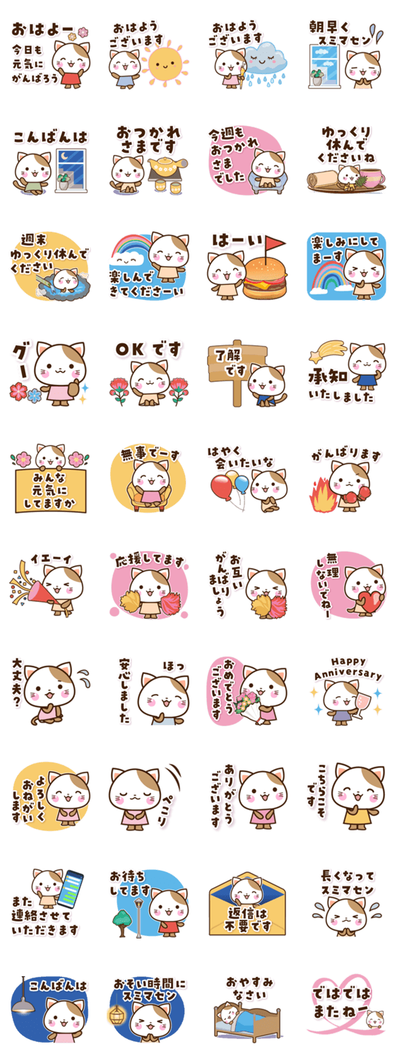 子猫の丁寧な言葉のスタンプです。優しく思いやりのある言葉で話します。