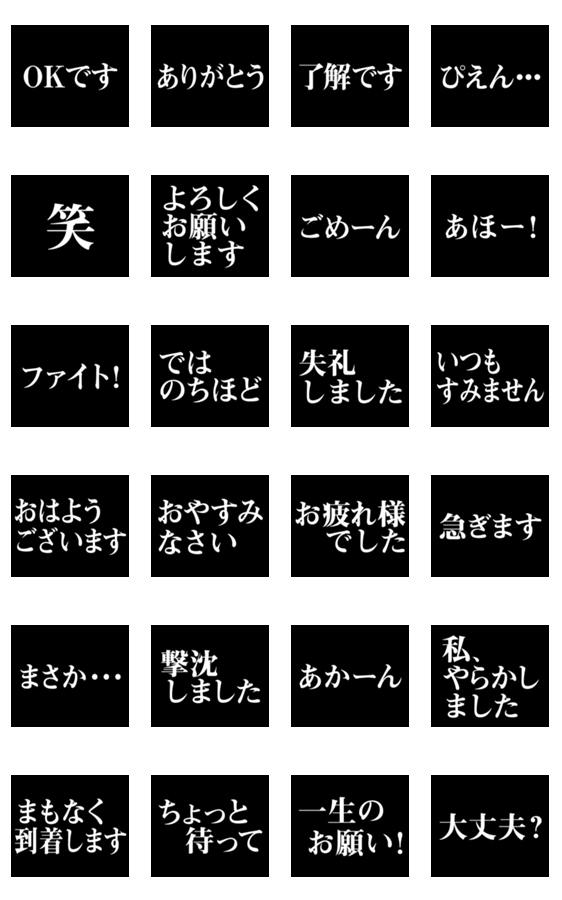 | スタンプ説明 | デカ文字シンプルな目立つポップアップのスタンプです。シンプルだけどインパクトのある毎日の会話や挨拶で使える、分かりやすいPOPUPスタンプ。 |