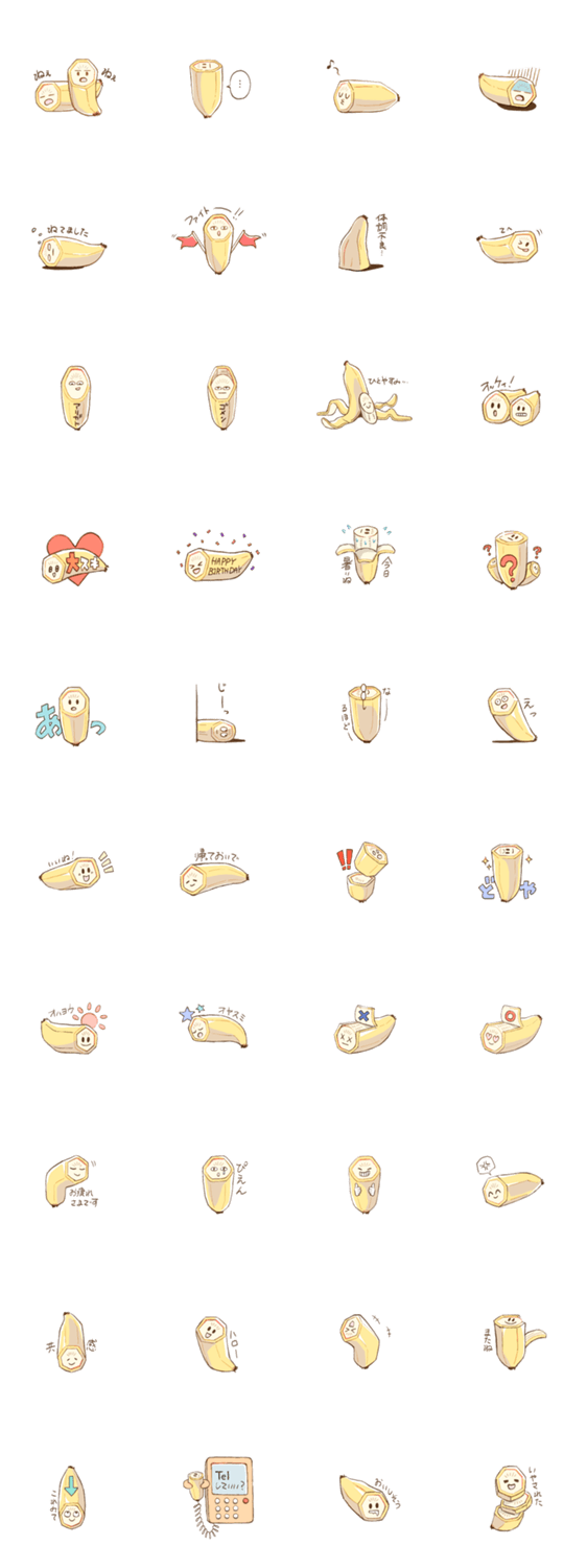 バナナを半分に切ったら顔を出したハナナのスタンプです。
