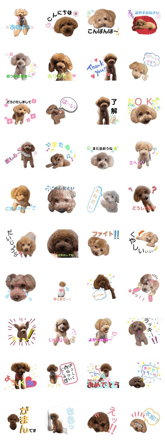 スタンプ説明 表情豊かなトイプードルのティナちゃんがご挨拶
