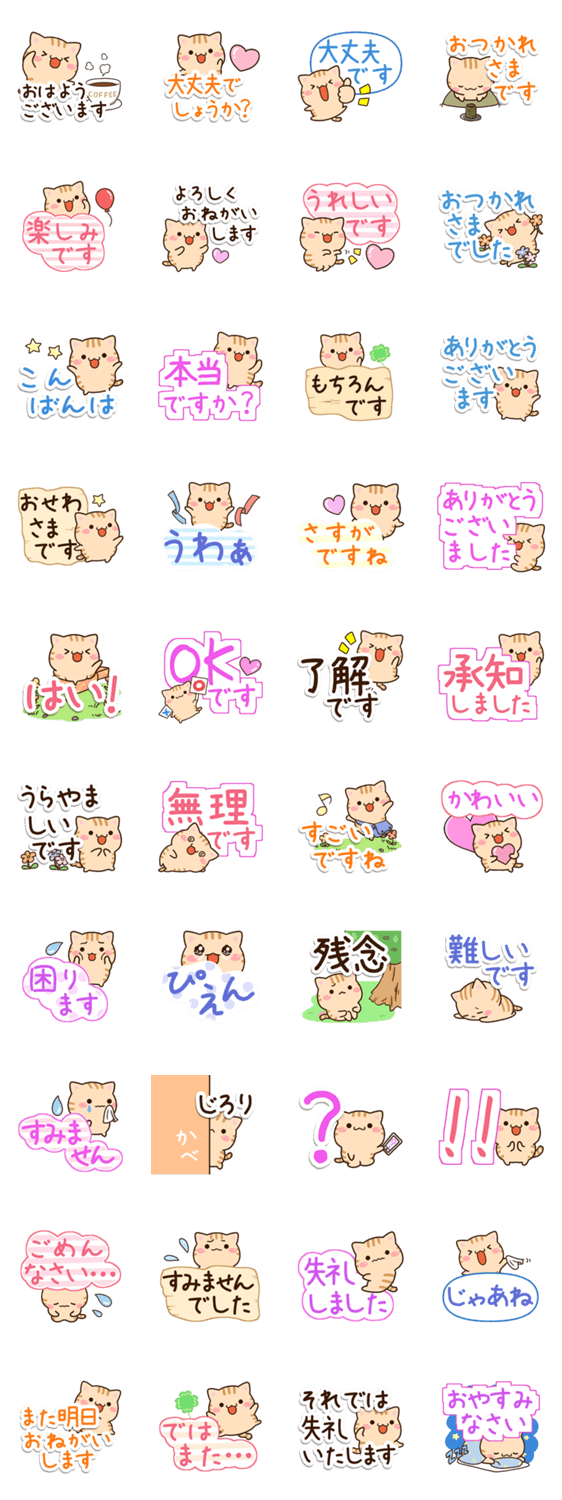 ちょっぴり太った、丸っこいトラネコの『トラまる』。可愛く、優しく返信できます。丁寧な言葉を集めた、毎日使える猫スタンプです。ねこ好きの方にぜひ。【かたこ】