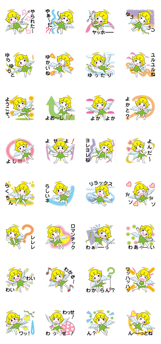 | スタンプ説明 | あなたの中の小さな天使。思わずつぶやく一人ごとに「ほっこり」します。 |
