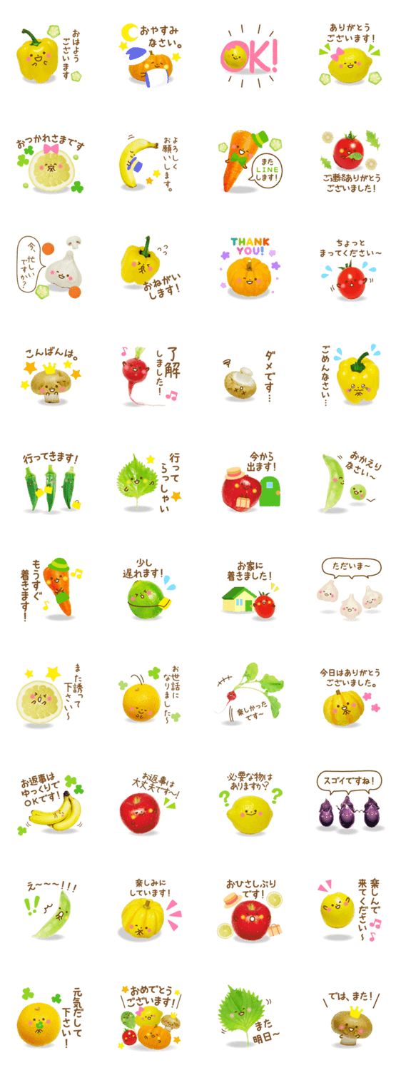 美味しそうな野菜や果物がかわいいキャラクターになったスタンプです