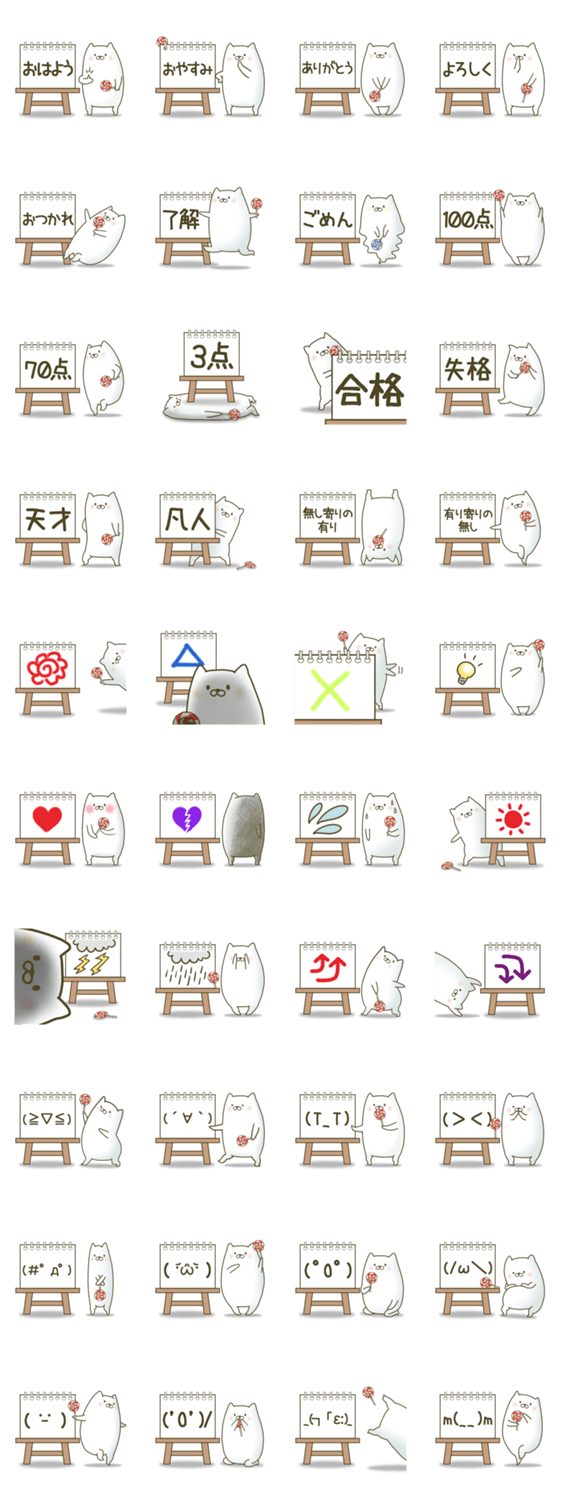 白ネコのあいうえお・・・ってるスタンプ