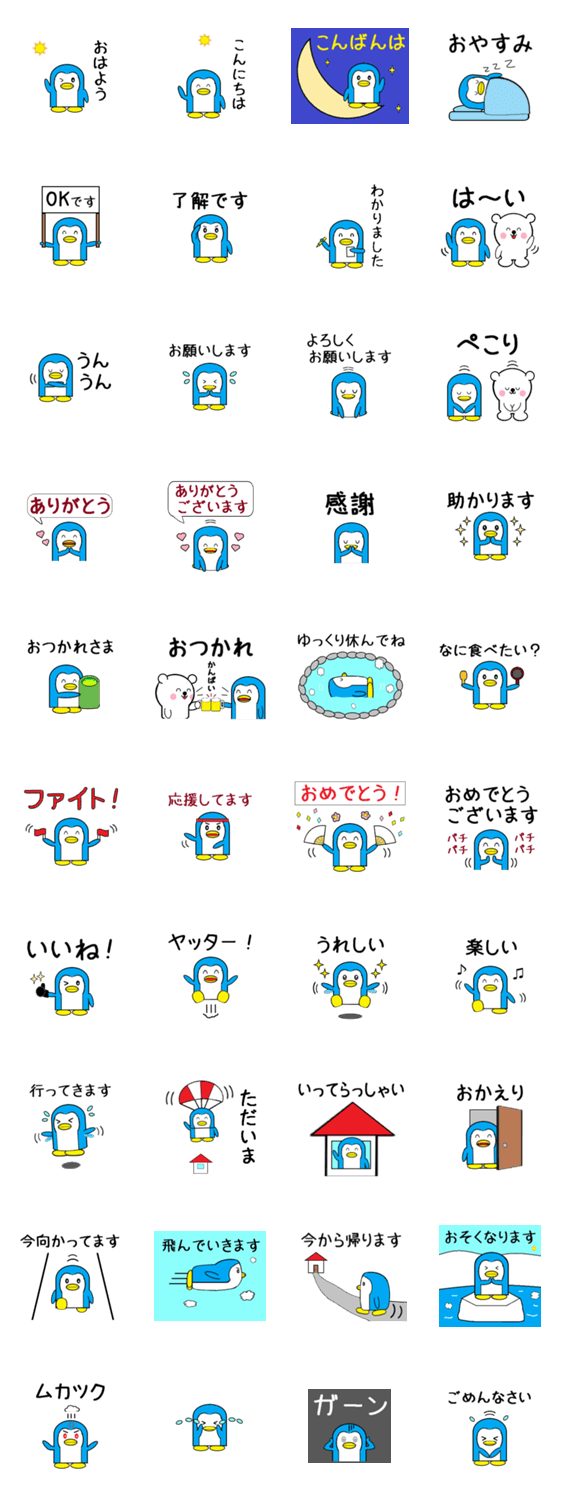 青いペンギンスタンプ1 -LINEスタンプマニア