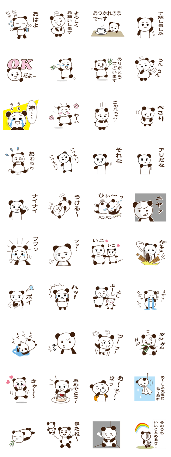 日常に使える、色々な表情のかわいいパンダのスタンプです。