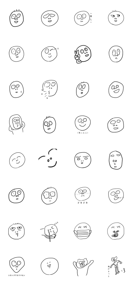あーさのてがきスタンプです。お持ちのスタンプで、なんだか欲しい顔がないなあという時にはこちらをお使いください。