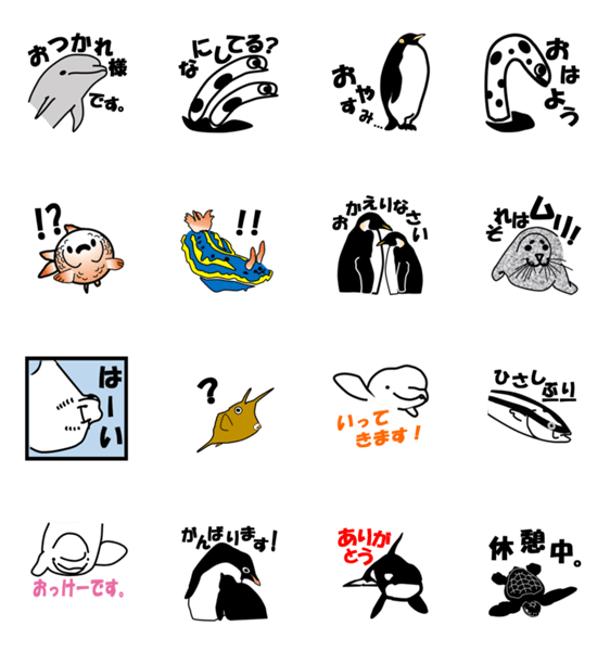 シャチやベルーガ、ペンギンといった生き物たちをモチーフにした名古屋港水族館公式LINEスタンプです。日常のコミュニケーションにぜひお使いください。