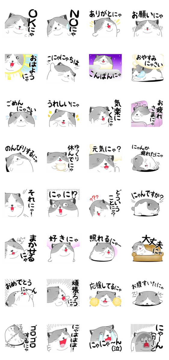 ゆるくて可愛いまんまる猫のスタンプです。よく使う日常会話でまとめた使いやすいセットです。