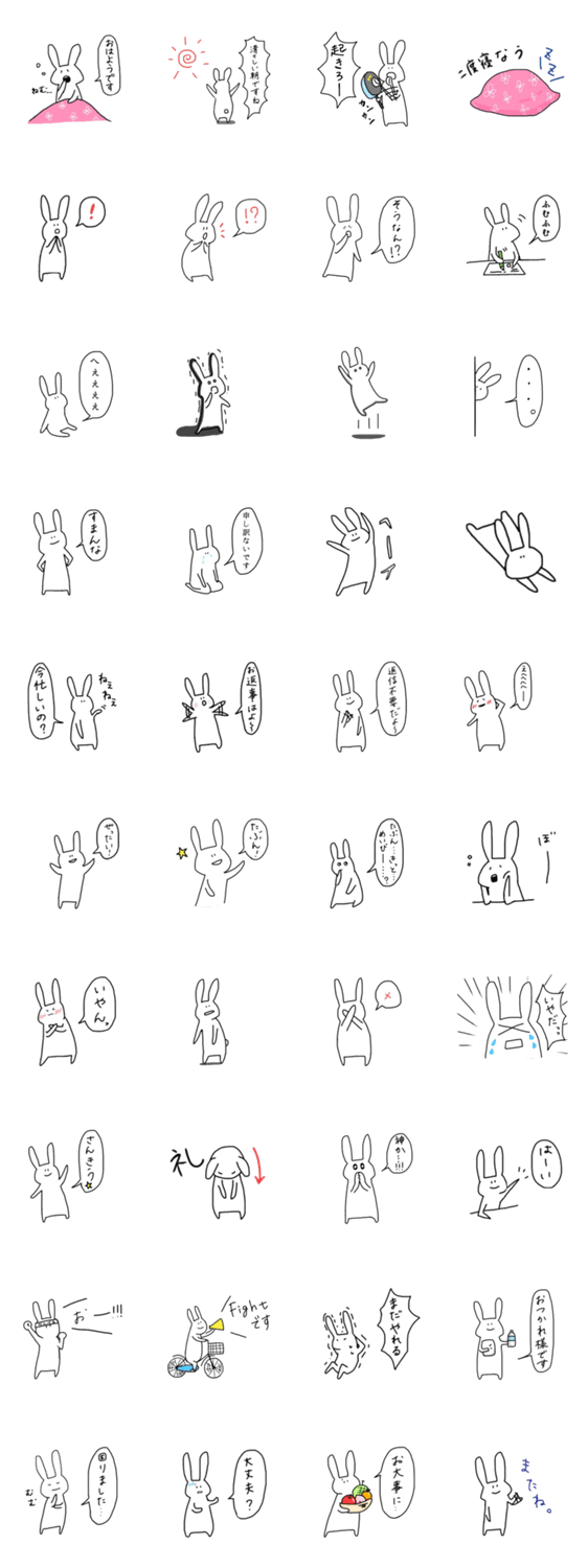 ゆるい落書きのようなスタンプ、第2弾うさぎver.です。使いやすいスタンプを目指しました