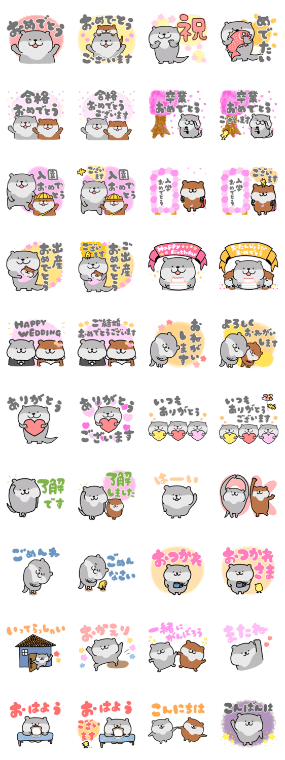 かわいいカワウソがお祝いします。 おめでとう/誕生日/結婚/出産/新年/お祝い事/記念日/季節・イベント(入学・卒業)/敬語
