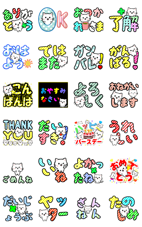 画面いっぱい元気に飛び出す!ねこ ☆ 見やすいデカ文字 ☆ お誕生日、おめでとうも ☆ 敬語編もあります #はじめてのLINEスタンプ にオススメ