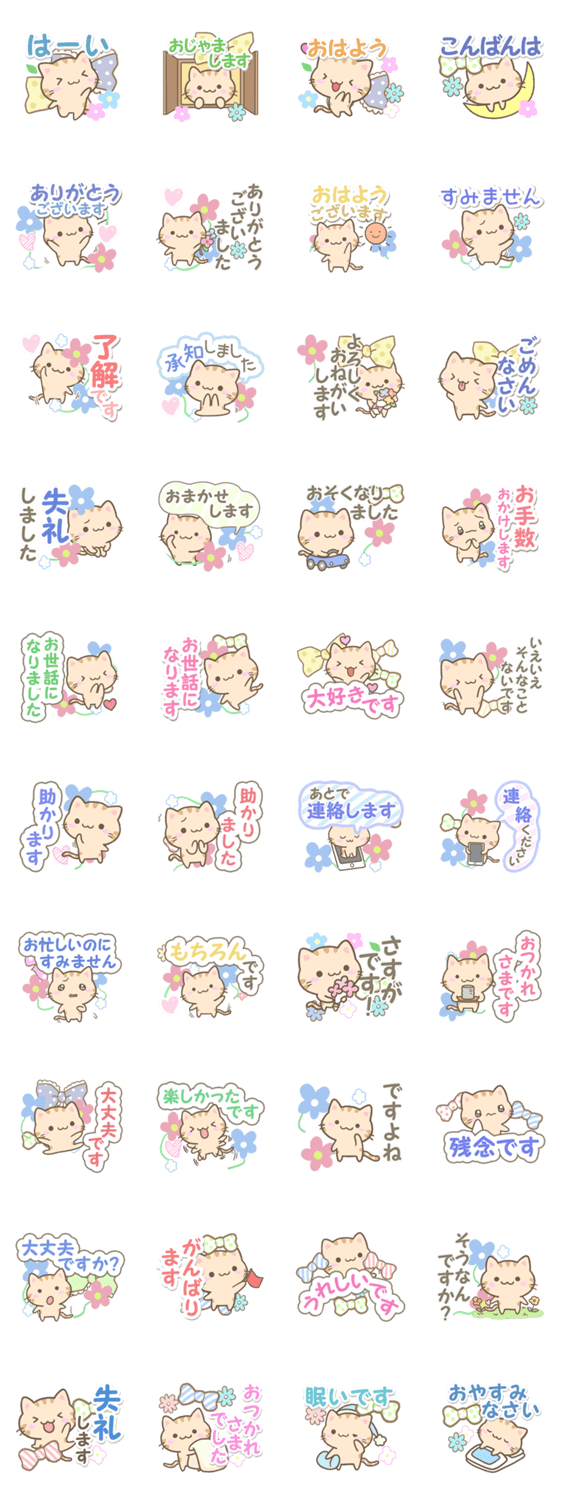 『小さいトラネコ』スタンプから、【パステルカラー】編になります。かわいいトラねこが、パステルカラー調になって、やさしく返信します。猫好きな方にぜひ。【かたこ】