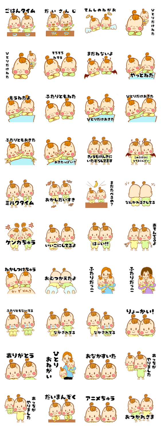 双子ちゃんママ監修の可愛い双子の赤ちゃんスタンプです。ママ目線だから実用的で使いやすい♪家族との連絡用に是非ご活用ください! #はじめてのLINEスタンプ にオススメ