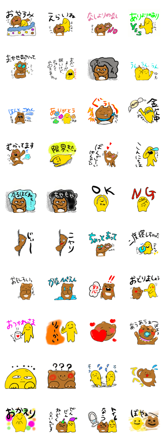 黄色の不思議な生き物とくま風生き物の日常 -LINEスタンプマニア